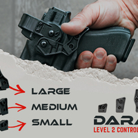 For shooters running duty-style holsters in competition—common in Tactical Games and some USPSA divisions—Dara’s Level 2 Control Kit offers customization for the retention release mechanism.