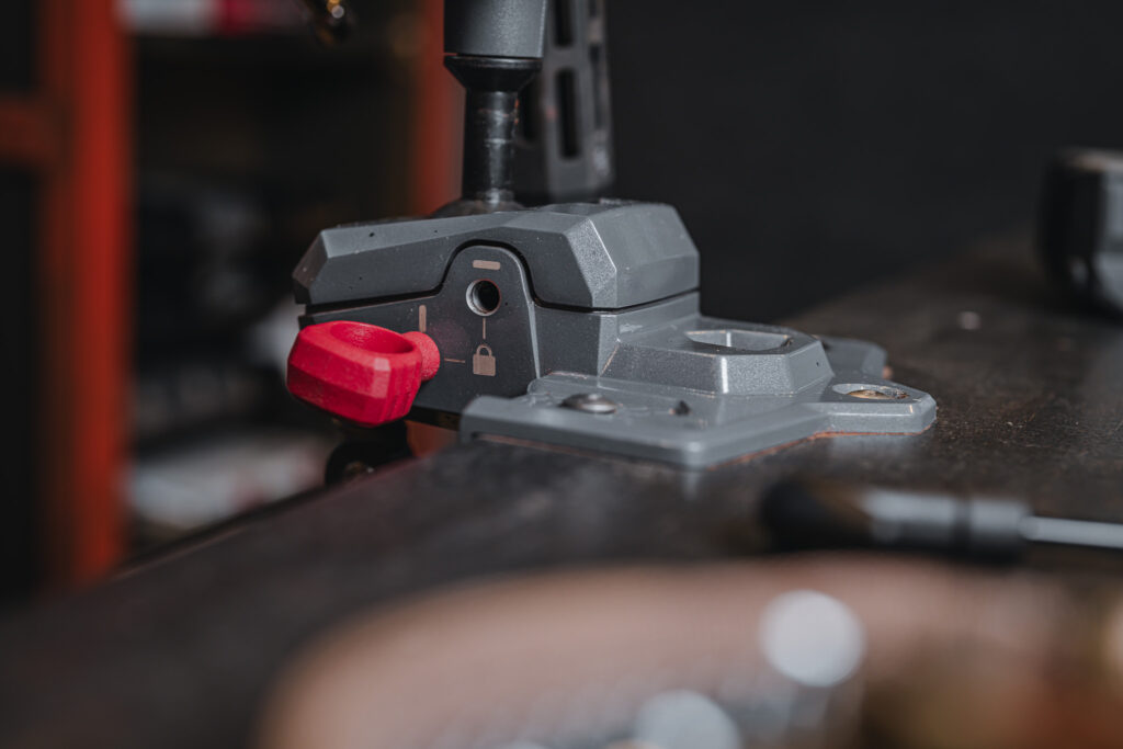 The mounting plate design: On one of my rolling tool boxes, the friction clamp obstructs the top drawer when it’s in the locked position. Unlike a traditional vise where the handle slides up and out of the way, the Master Gun Vise’s clamp stays where it is. I’m not sure there’s a good solution to this given how the mechanism works, but it’s worth considering your bench layout before you drill mounting holes. I’m looking at Inline Fabrication plates for modularity, which might help with this issue.