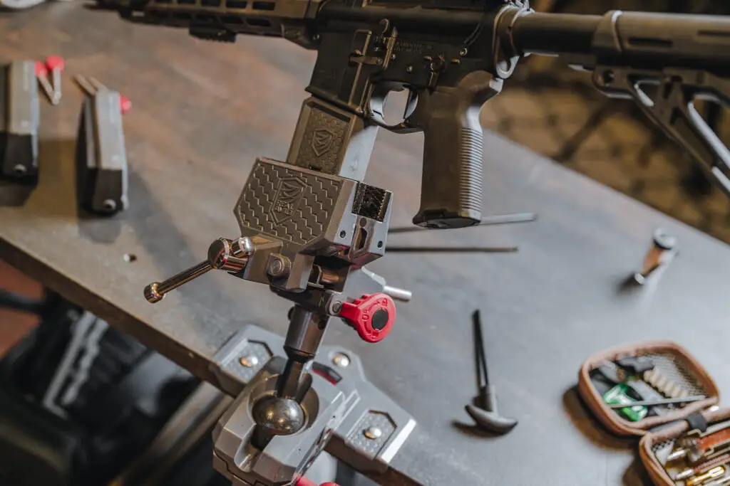 For AR-15 specific work, look for a vise system with dedicated upper and lower receiver attachments. The Real Avid Master Gun Vise with the Lug-Lok (for uppers) and Smart-Fit Vise Block (for lowers) provides purpose-built solutions that protect your receiver while handling the torque requirements of barrel nut installation and other high-stress tasks.