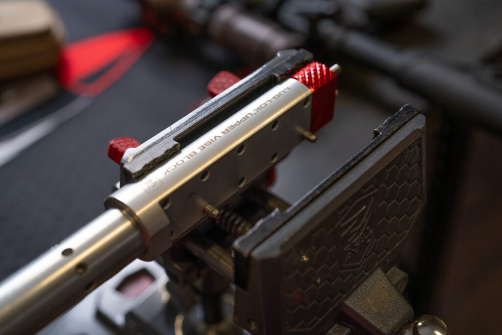 I’ve used it for barrel nut installation, muzzle device swaps, and handguard changes. It’s intuitive and quick to set up. At Tactical Games events, we frequently have competitors who show up with muzzle devices that don’t meet the rules. Our trailer-mounted vise with the Lug-Lok lets us swap those devices in minutes rather than sending someone home or scrambling for tools.