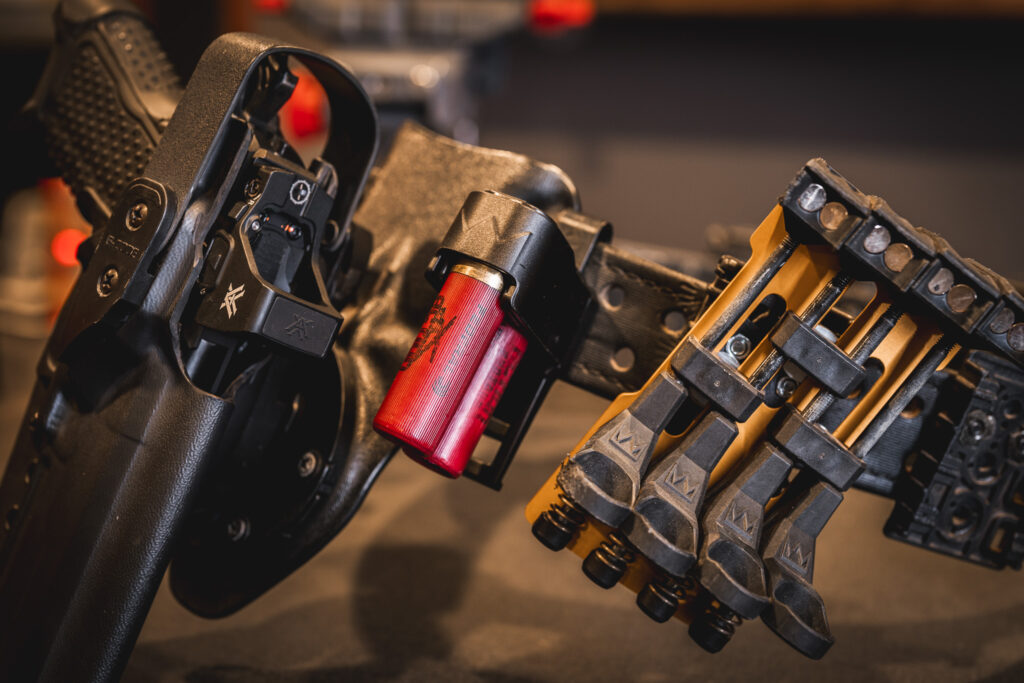 If I had to complain about anything with the King Competition caddies, it’s that the 8up version slots don’t line up where I’d want on the belt line, causing the aluminum edge to uncomfortably dig into my legs if crouching or bending even slightly. Beyond that, they have a solid hold and easy, repeatable release when you need to pull shells from them. I’ve since filled the rest of my belt out with the option to run 4x MSHG6-KING-ASSM8’s depending on the round count of the stage.